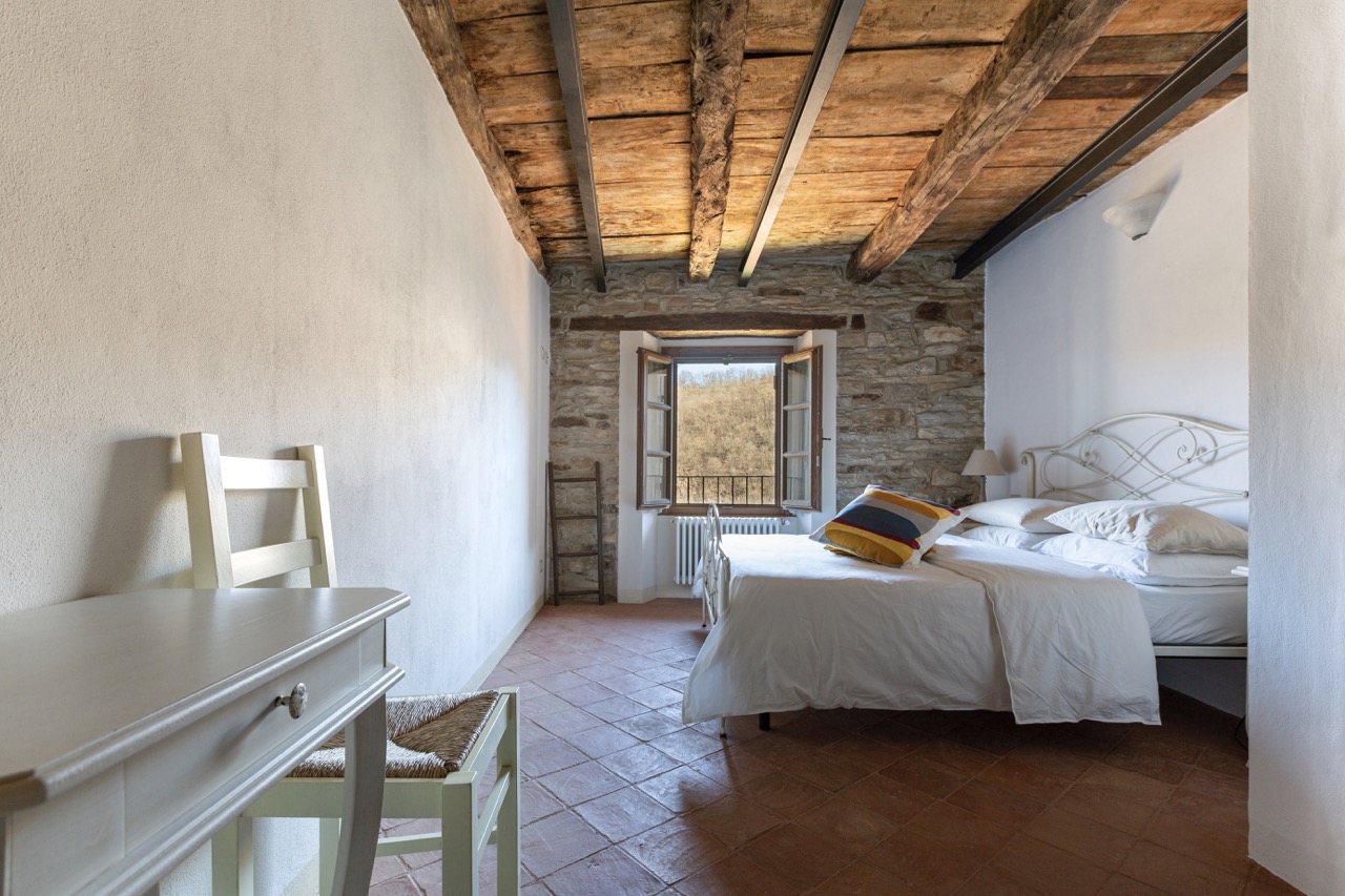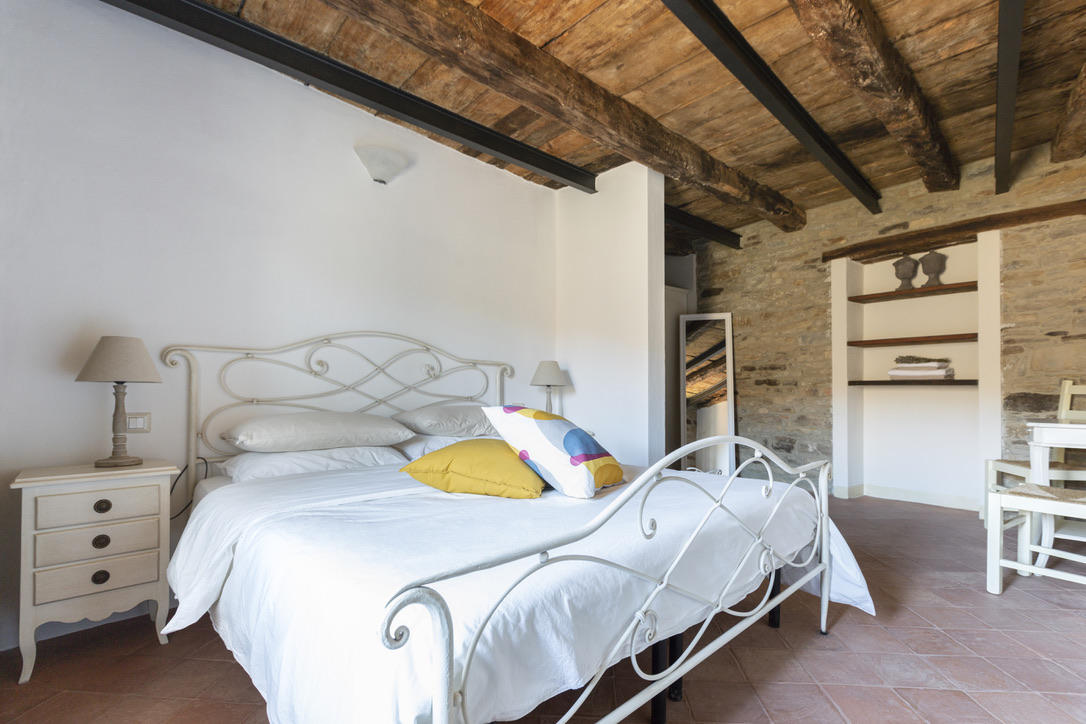 La camera si trova al primo piano e dispone di un letto matrimoniale, un armadio e un bagno spazioso. Tutte le finestre sono dotate di zanzariere e persiane per tenere lontani gli insetti, il calore e la luce.