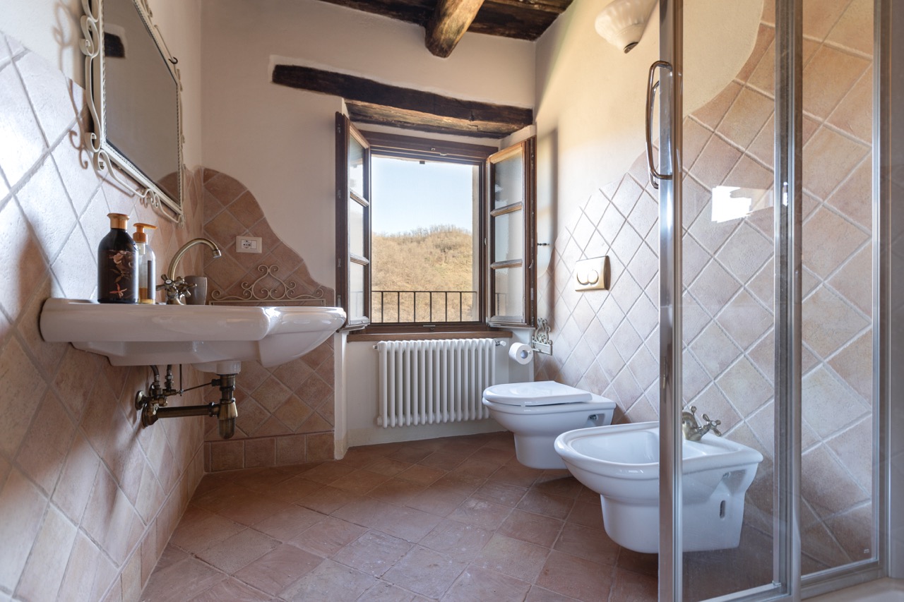 Camera con letto matrimoniale | Bagno: lavabo, doccia, WC, bidet |